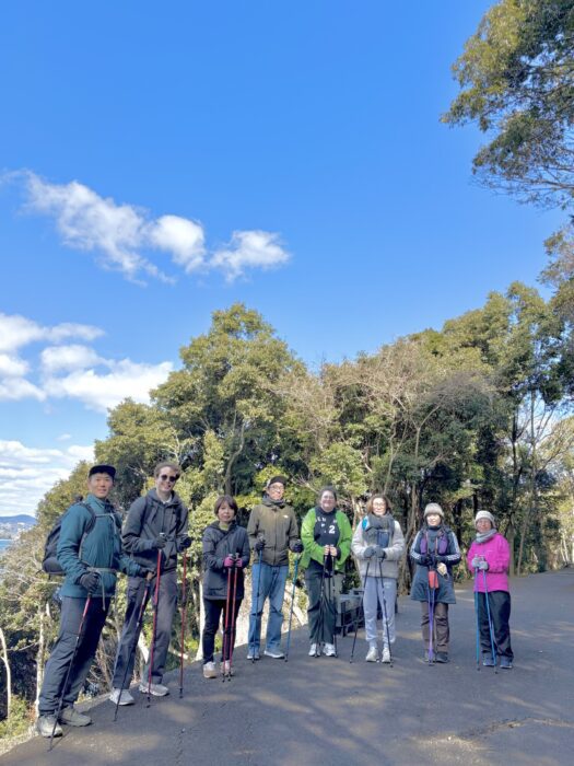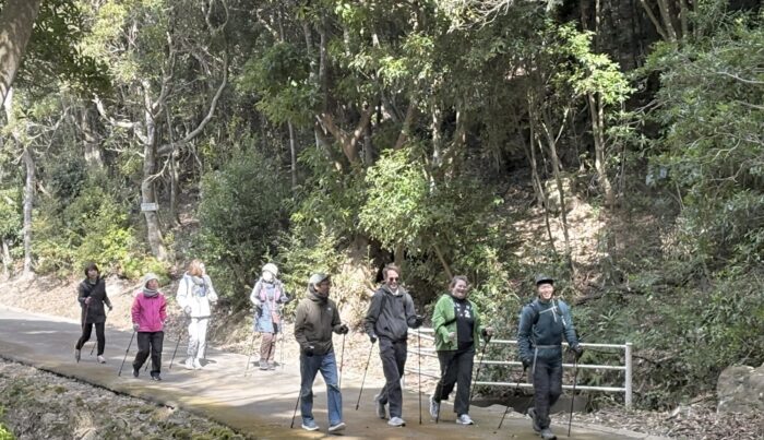 ノルディックウォーキングは大崎半島にぴったりの自然と健康に調和したスポーツです。