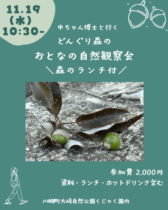 中ちゃん博士と行く、どんぐり森の「大人の自然観察会」開催します