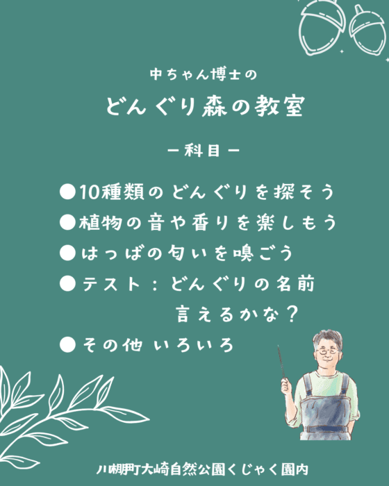 中ちゃん博士の丁寧な解説付で、1日だけの森の教室が開校します