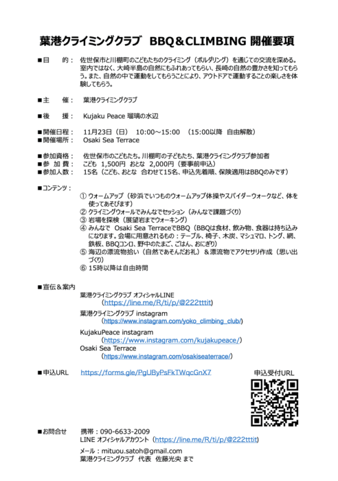 この度、お隣の佐世保市の葉港クライミングクラブ様と親子で楽しむクライミング体験会を開催する運びとなりました\(^o^)/