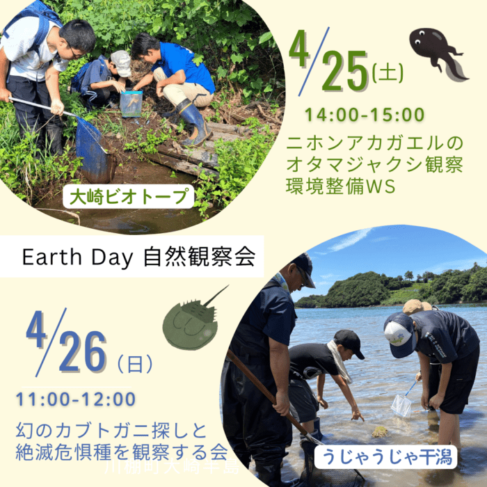 川棚大崎海水浴場で開催されるEarth Day in KAWATANAにて、自然観察会を2日連続で開催します。