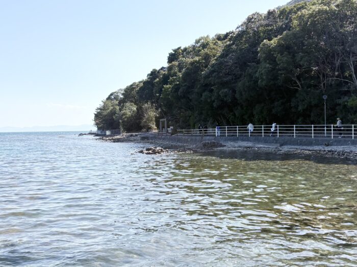 ウォーキングコースは、大村湾を望む遊歩道から休憩所の東屋までの往復コース(片道30分程度)